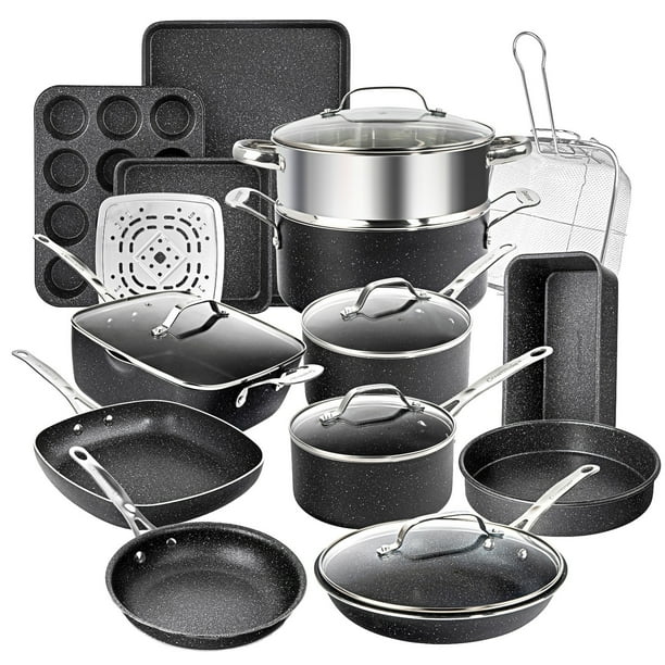 Granitestone Pots And Pans Set 20 Piece Complete Cookware Bakeware Set With Ultra Nonstick 100 Pfoa Free Includes Frying Pans Saucepans Stock Pots Steamers Cookie Sheets And Baking Pans Walmart Com